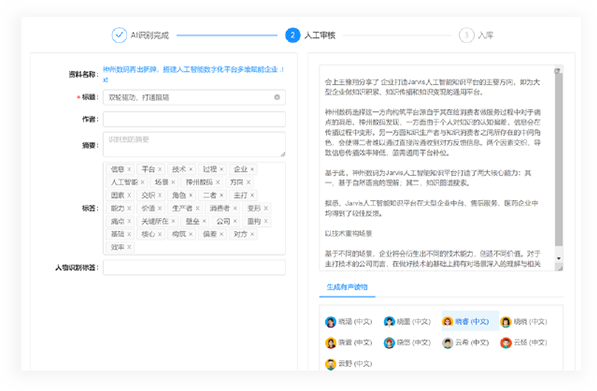 神州信息采用JARVIS系统,对学习中心的视频进行AI识别和分析,进行统一的资料管理,并提供智能搜索服务
