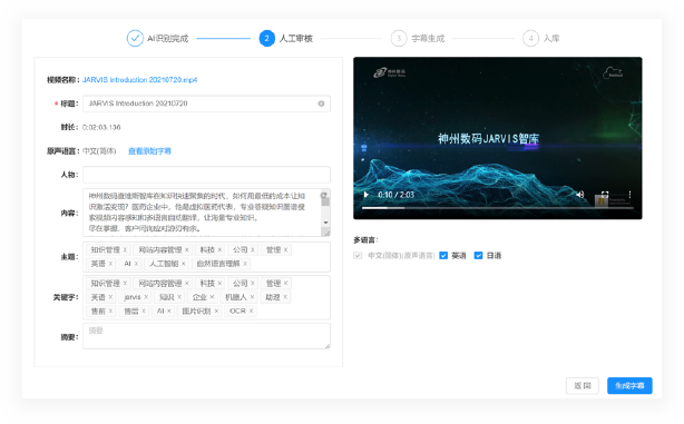 JARVIS-智能视频多语字幕制作器界面